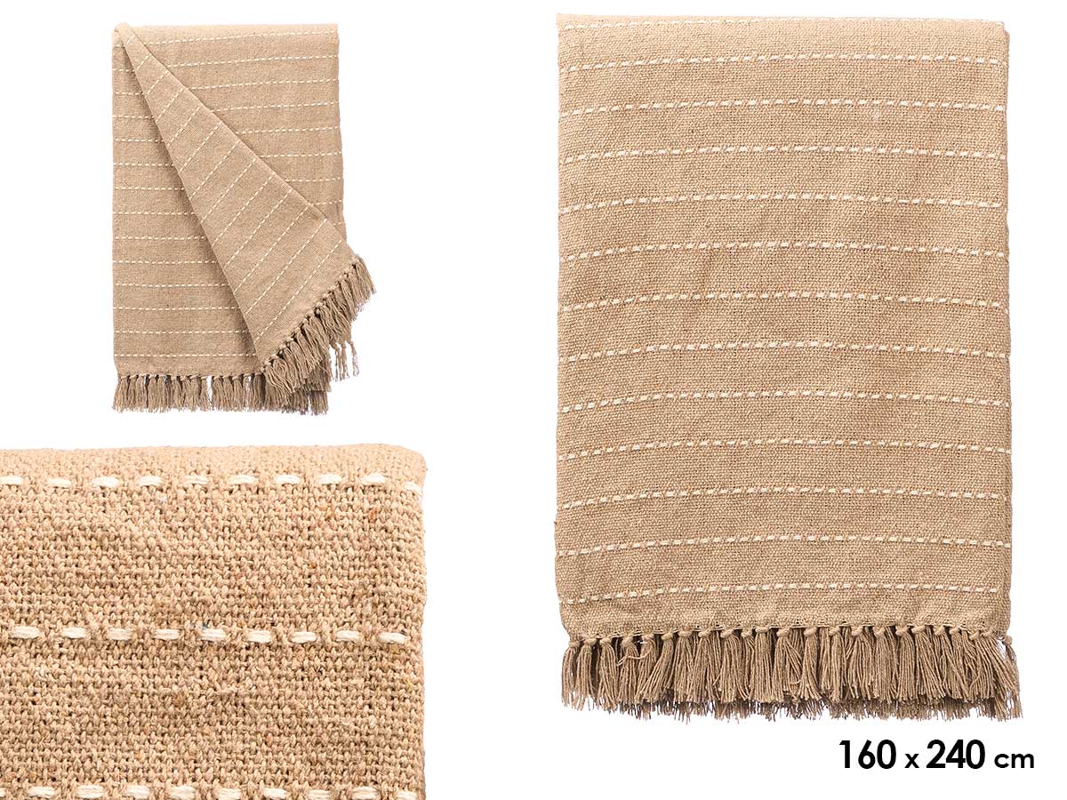 Beige striped knit multi-puprose throw 160x240cm