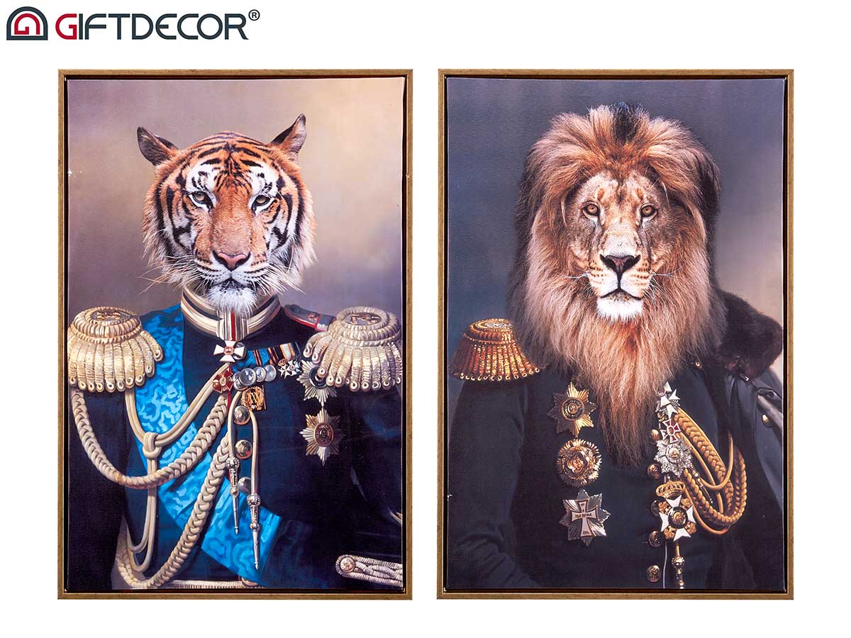 Canvas king lion w golden frame assort 2