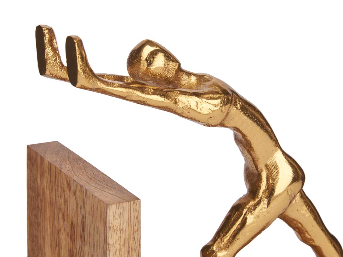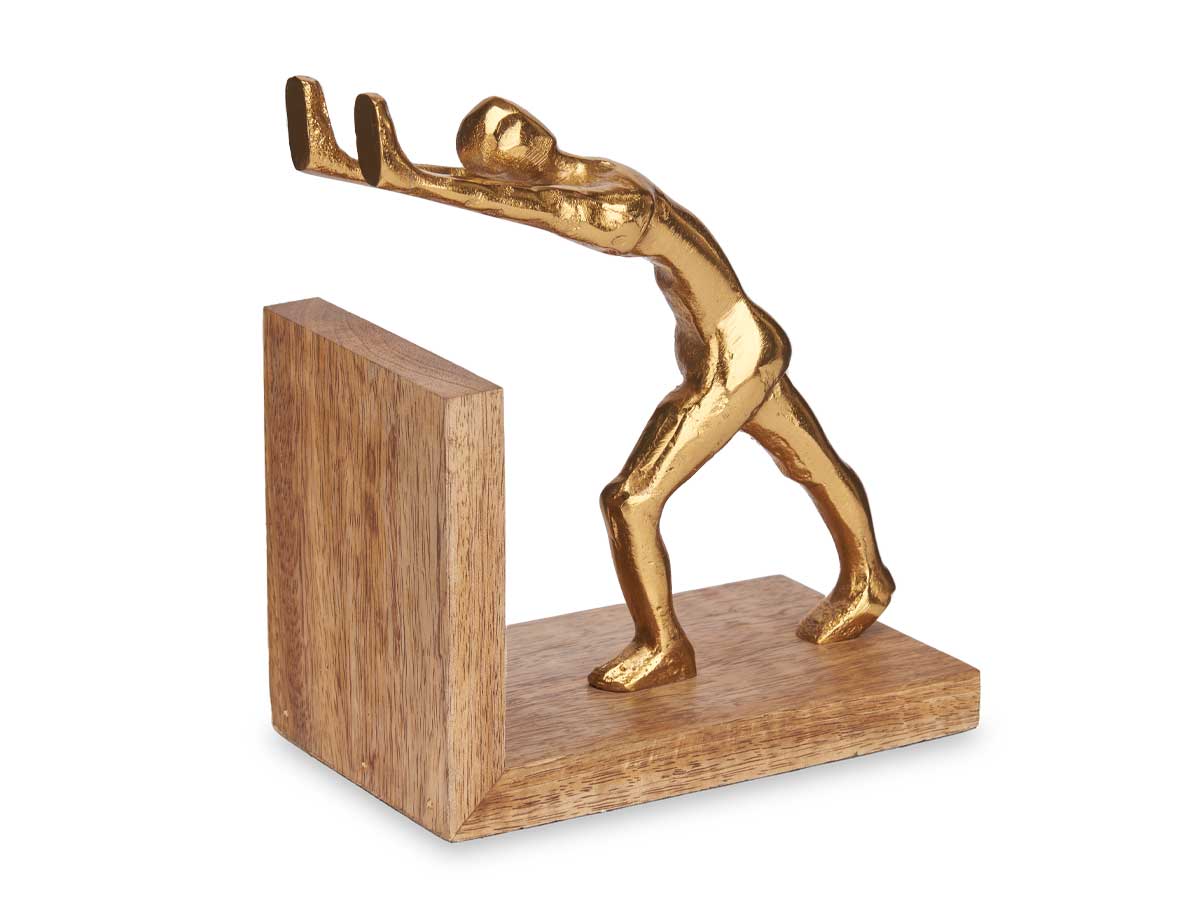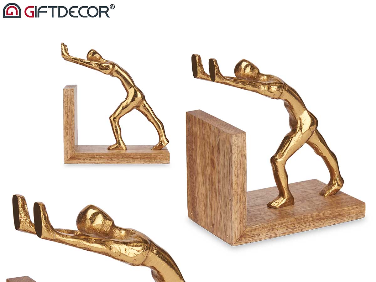 Gold decorative figure bookends wooden stand
