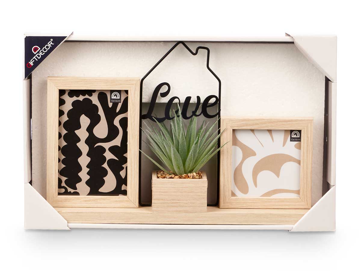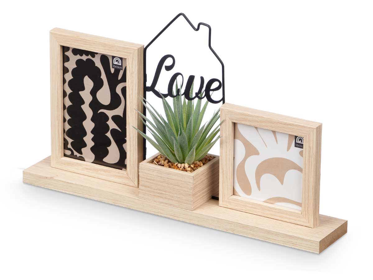 Portafoto 10x10cm y 10x15cm con planta y letrero