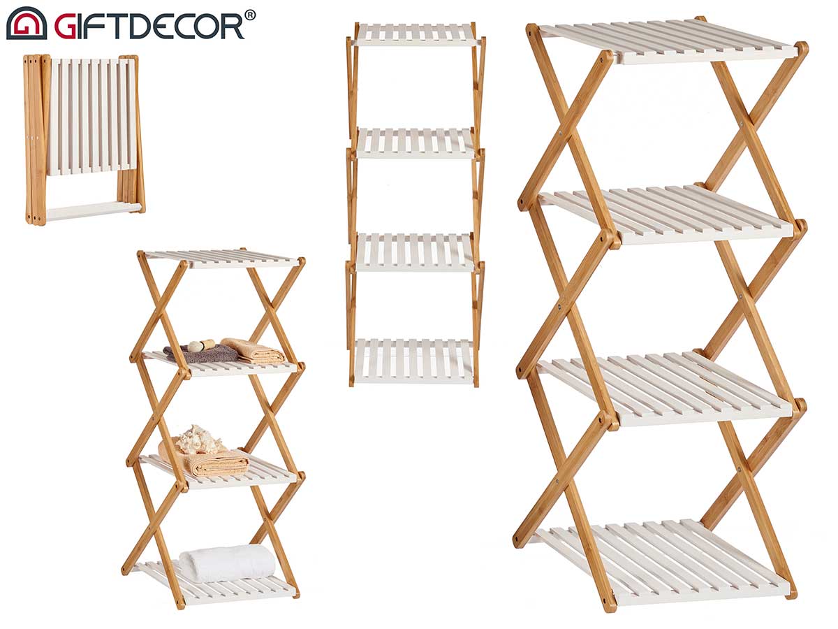 White bamboo quadruple folding shelf