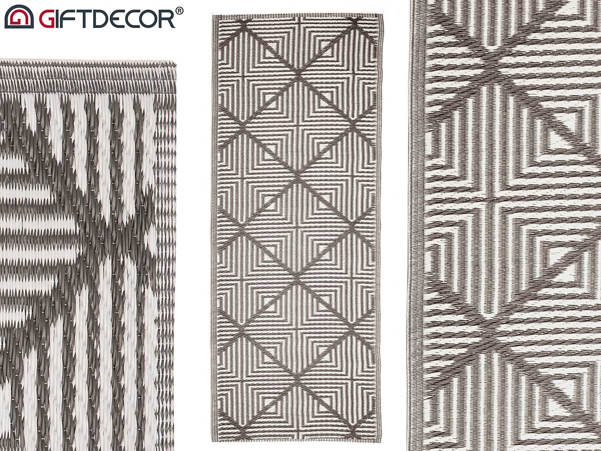 White grey rhombus carpet 60 x 150 cm