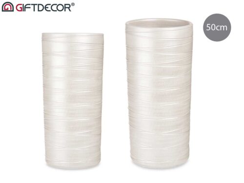 Porte parapluie ceramique rayures 50cm perle