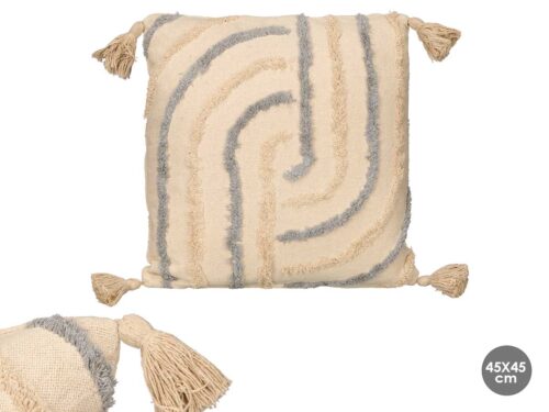 Coussin houppes beige 45×45 cm