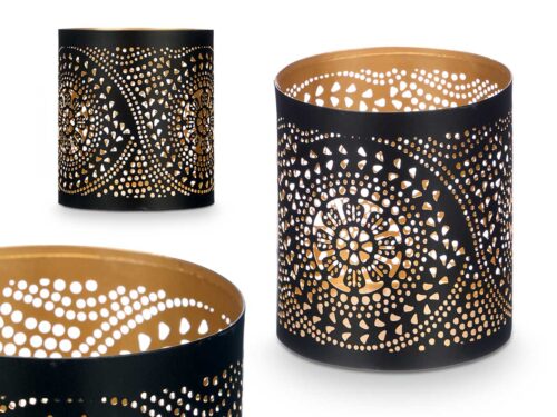 Bougeoir ajouré noir doré mandala