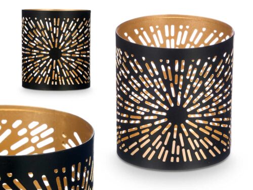 Bougeoir ajouré noir doré abstrait