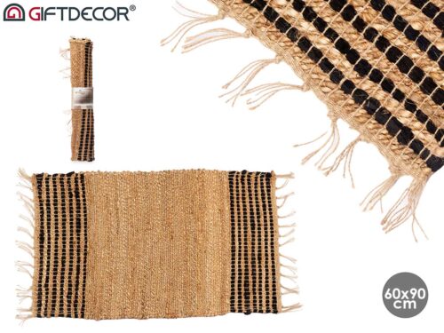 Tapis rayé noir et naturel 60 x 90 cm