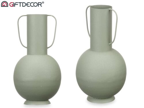Vase acier double anse vert pastel moyen