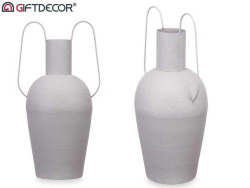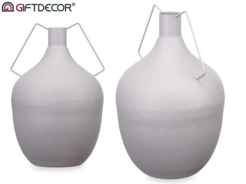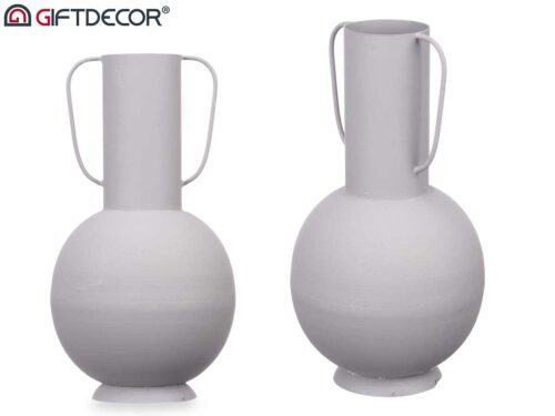 Vase acier double anse gris pastel