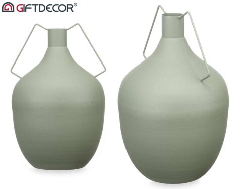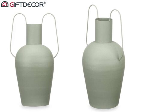 Vase acier double anse vert pastel grand