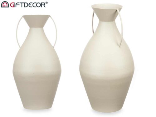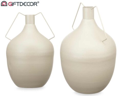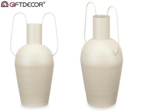 Vase acier double anse couleur crème pastel grand