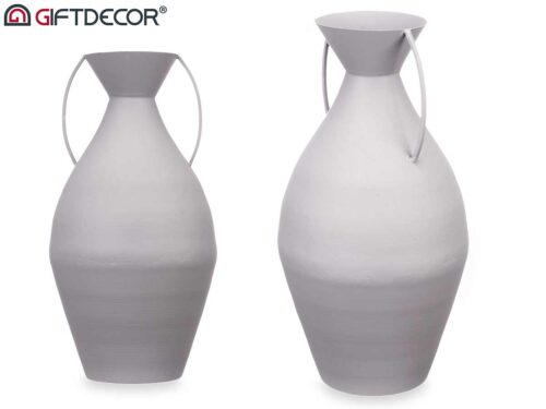 Vase acier double anse gris pastel grand