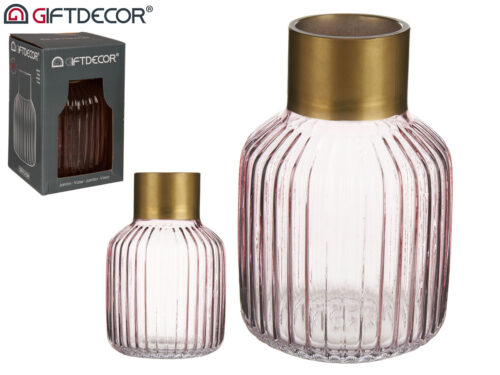 Vase en verre rayures or petit rose