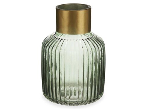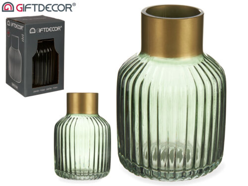 Vase en verre rayures or petit vert