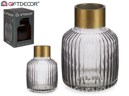 Vase en verre rayures or petit tranparent