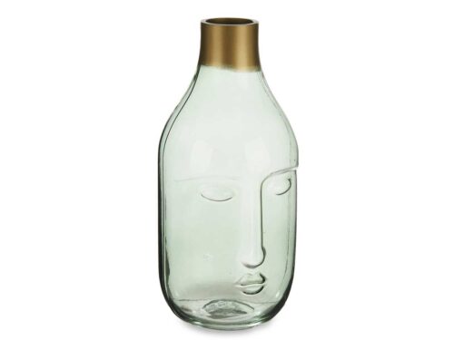 Vase en verre visage vert