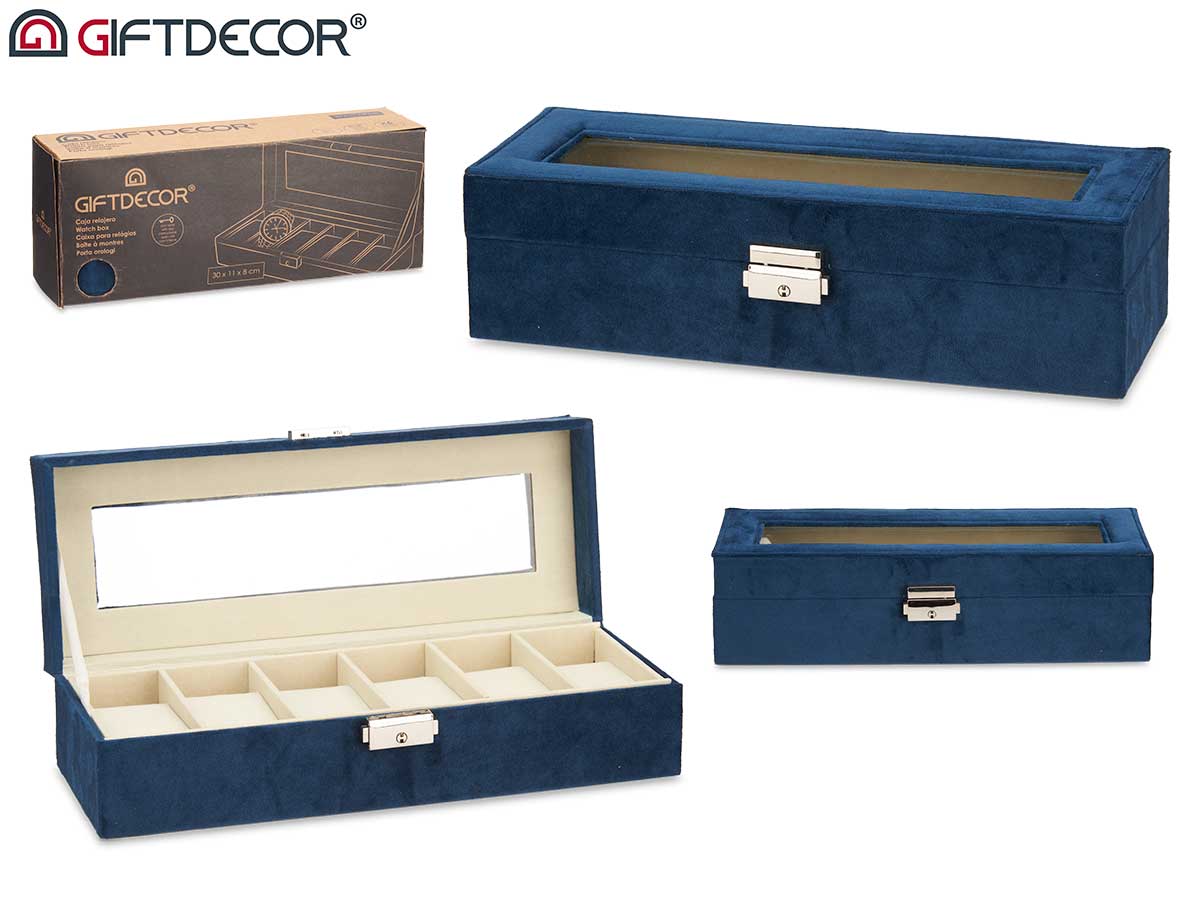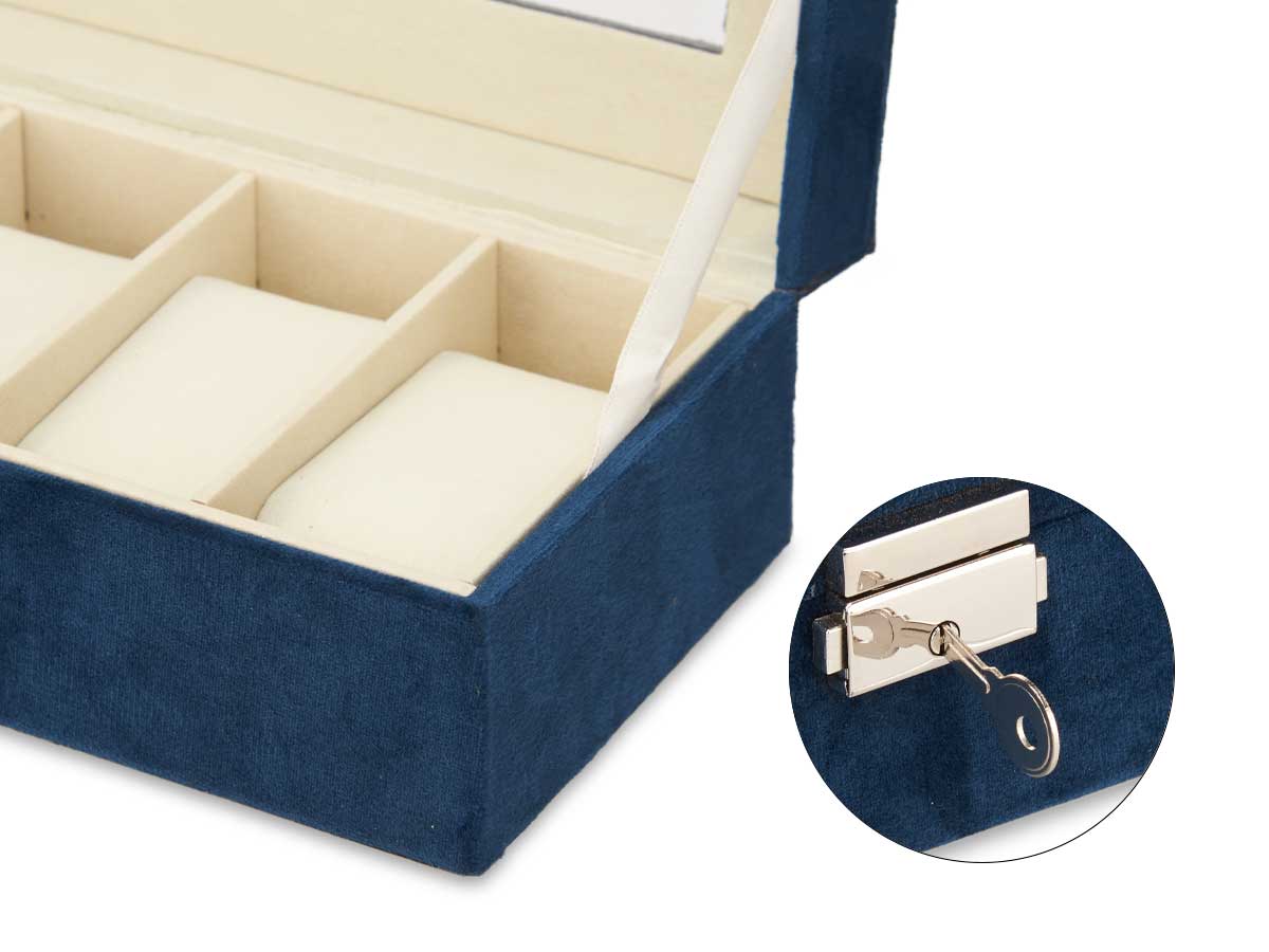 Boîte a montres 6 fentes serrure bleu pétrole