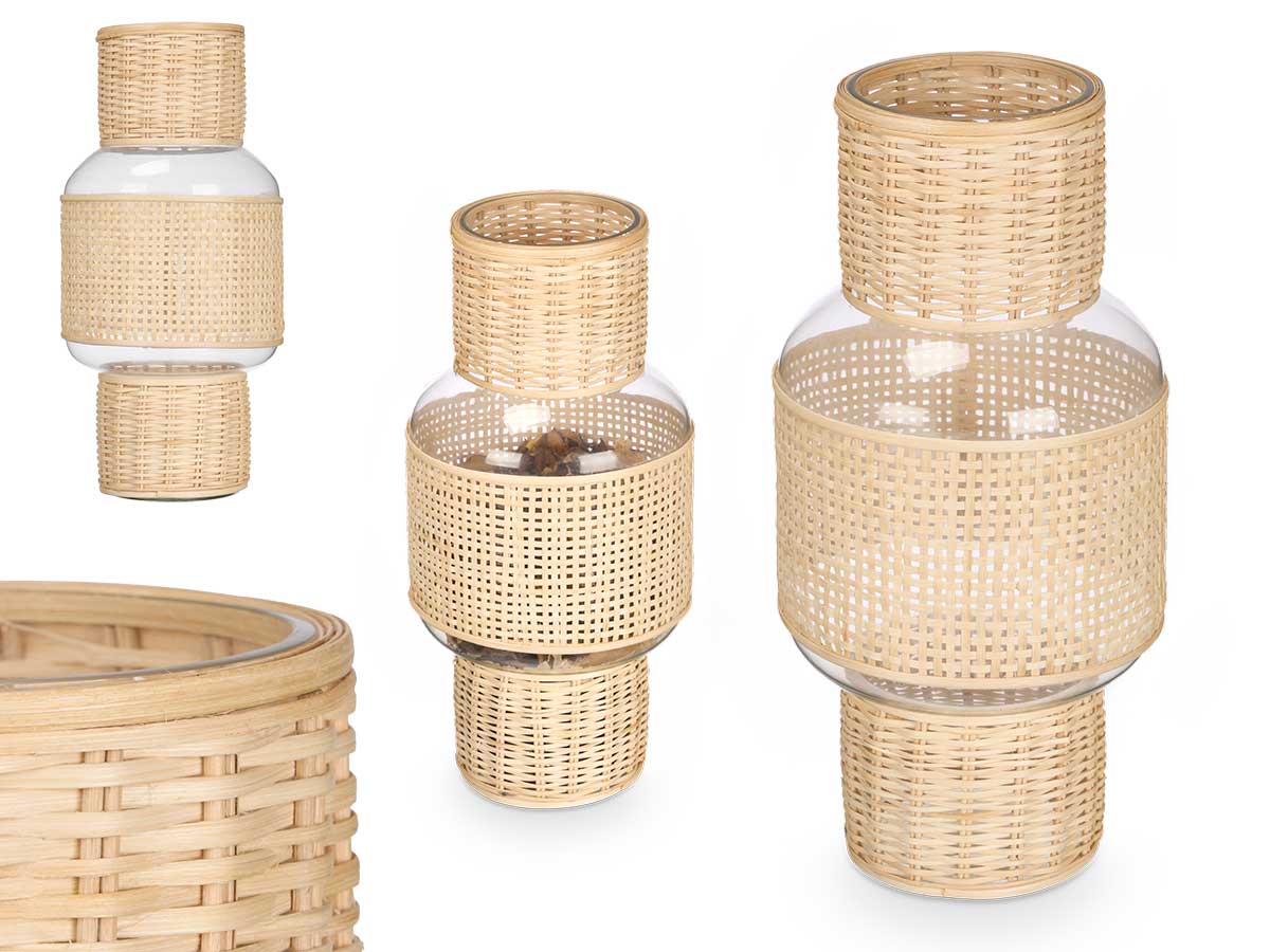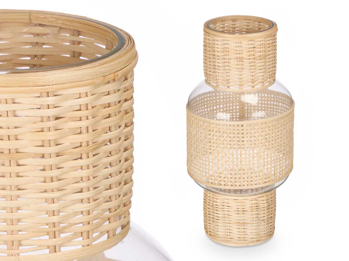 Portada » Boutique » Bougeoir avec forme en verre et rotin grand