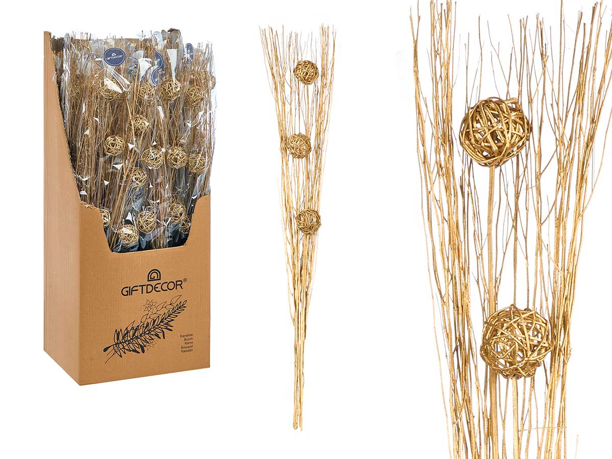Bouquet 3 boules doré métallique