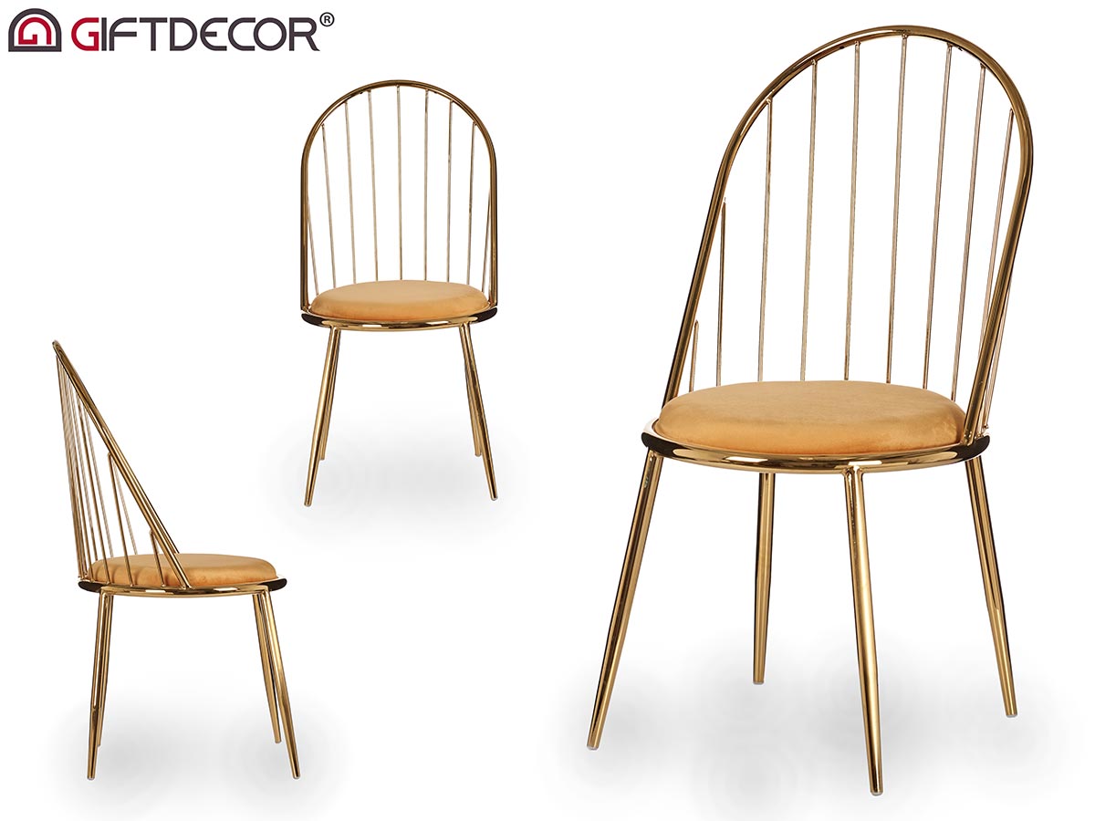 Chaise barreaux dossier haut chrome or moutarde
