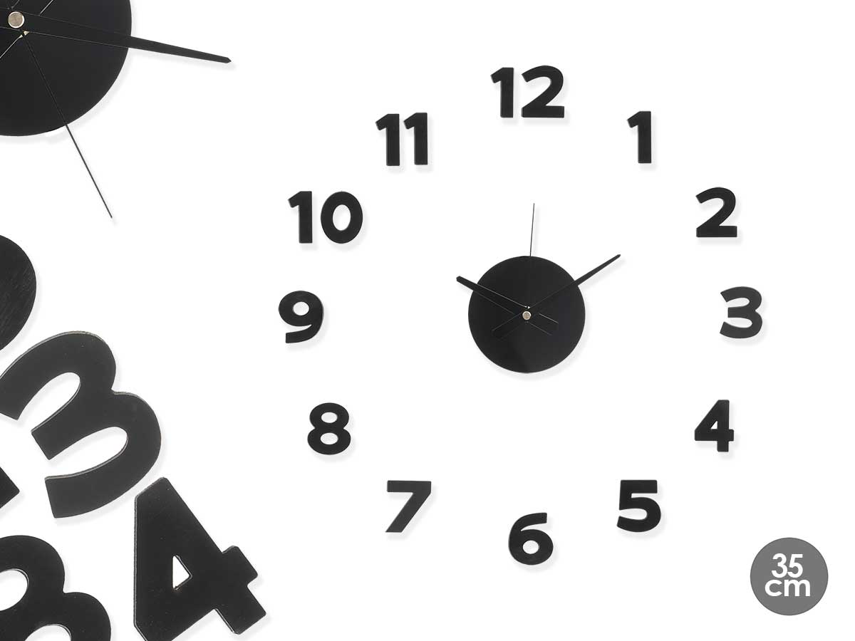 Horloge autocollant 35 cm nombres noir brillant