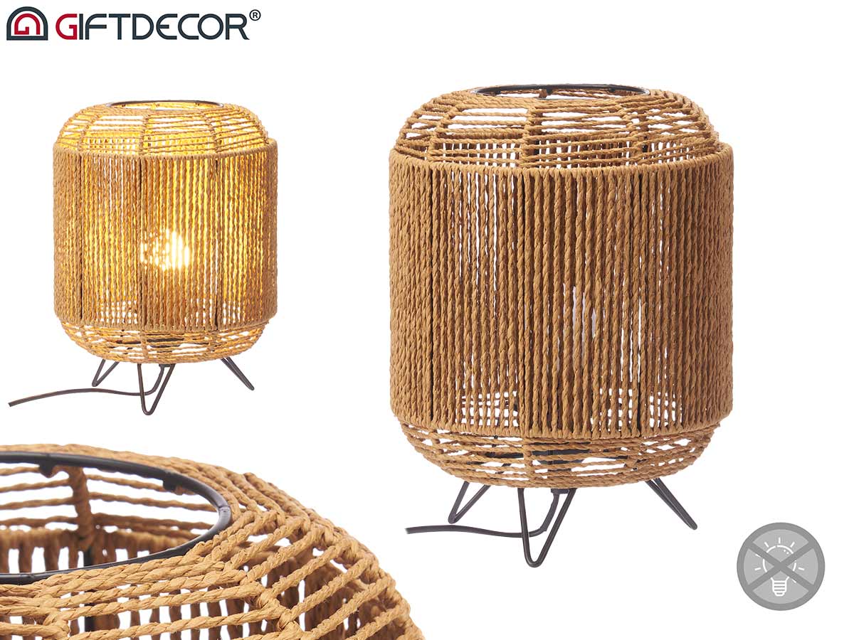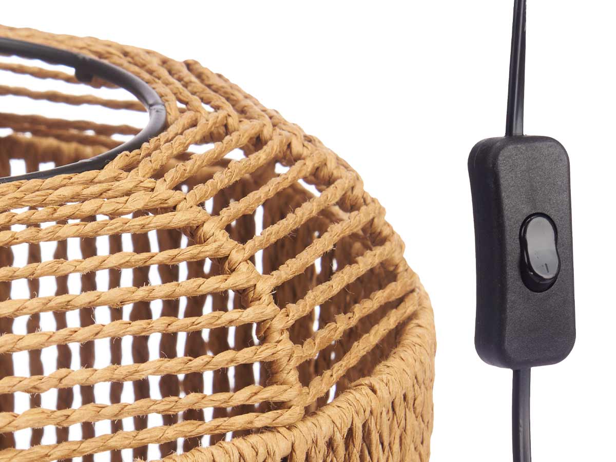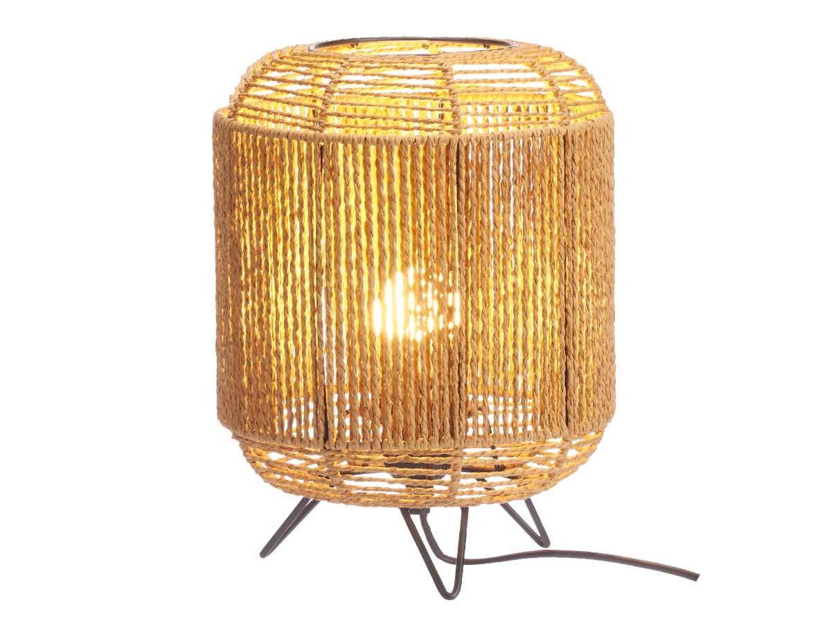 Lampe de table trépied cylindre corde
