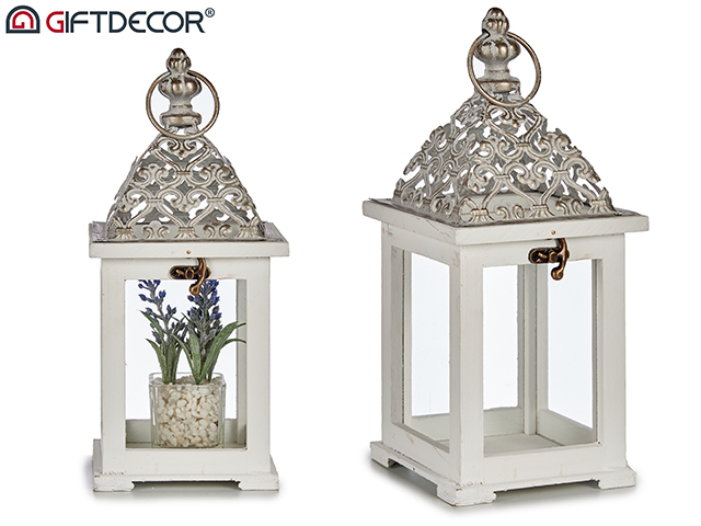 Lanterne bois carre grille ata blanc