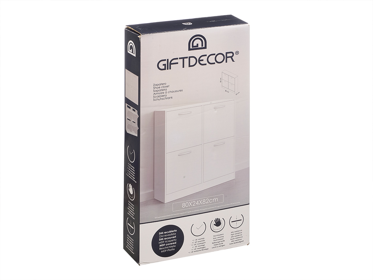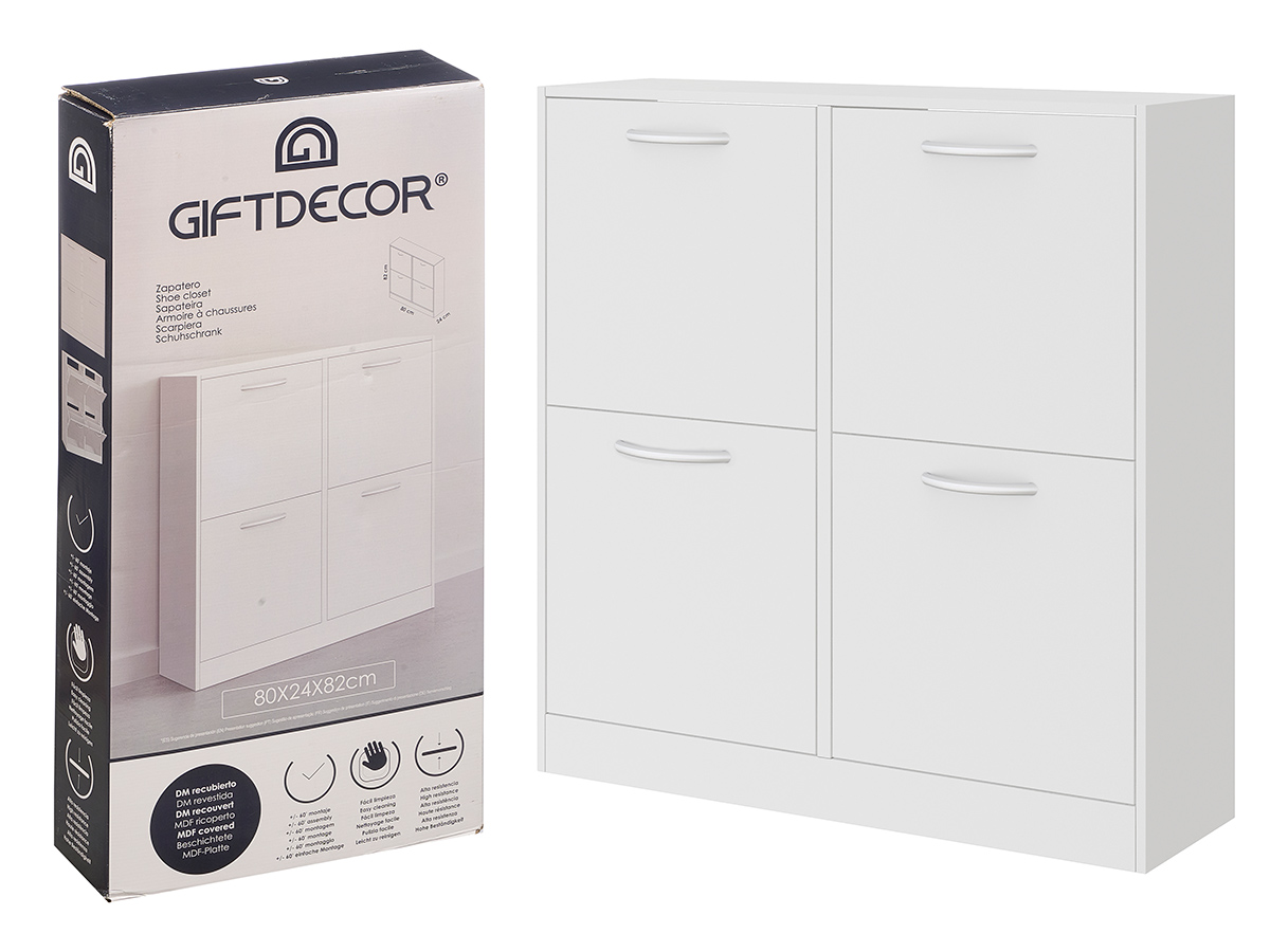 Meuble a chaussures bois 2 étages 4 portes blanc