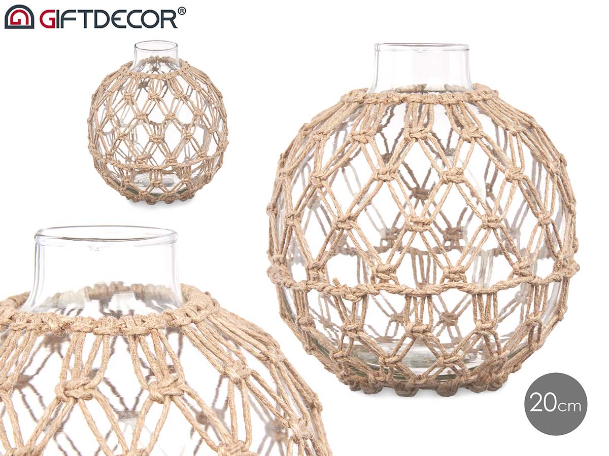 Sphère en verre avec corde naturelle moyen