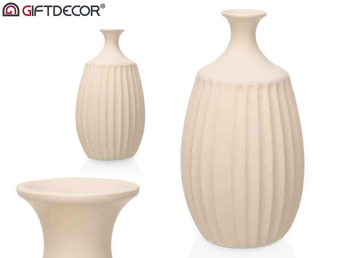 Vase ceramique goulot étroit 48cm beige