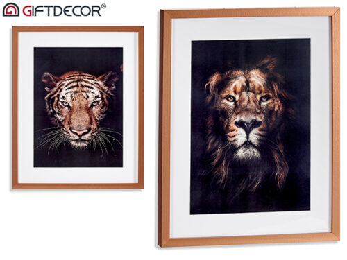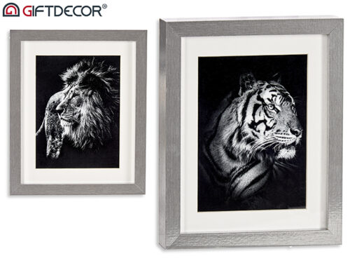 Quadro assortimento leone-tigre argento 23x28cm