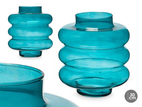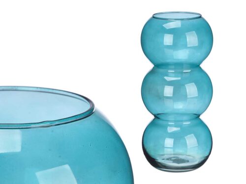 Vaso vetro tripla sfera appiattita 30cm turchese