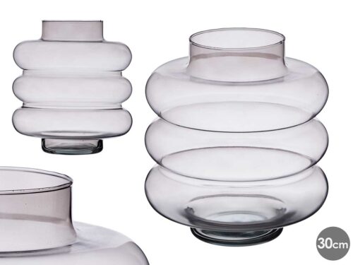 Vaso vetro tripla sfera appiattita 30cm grigia
