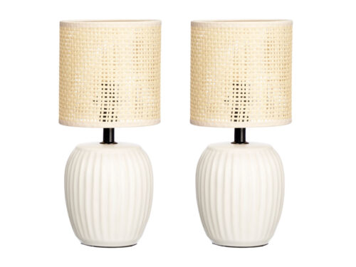 Set 2 lampade da tavolo bianche righe