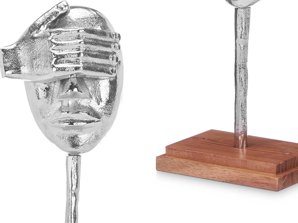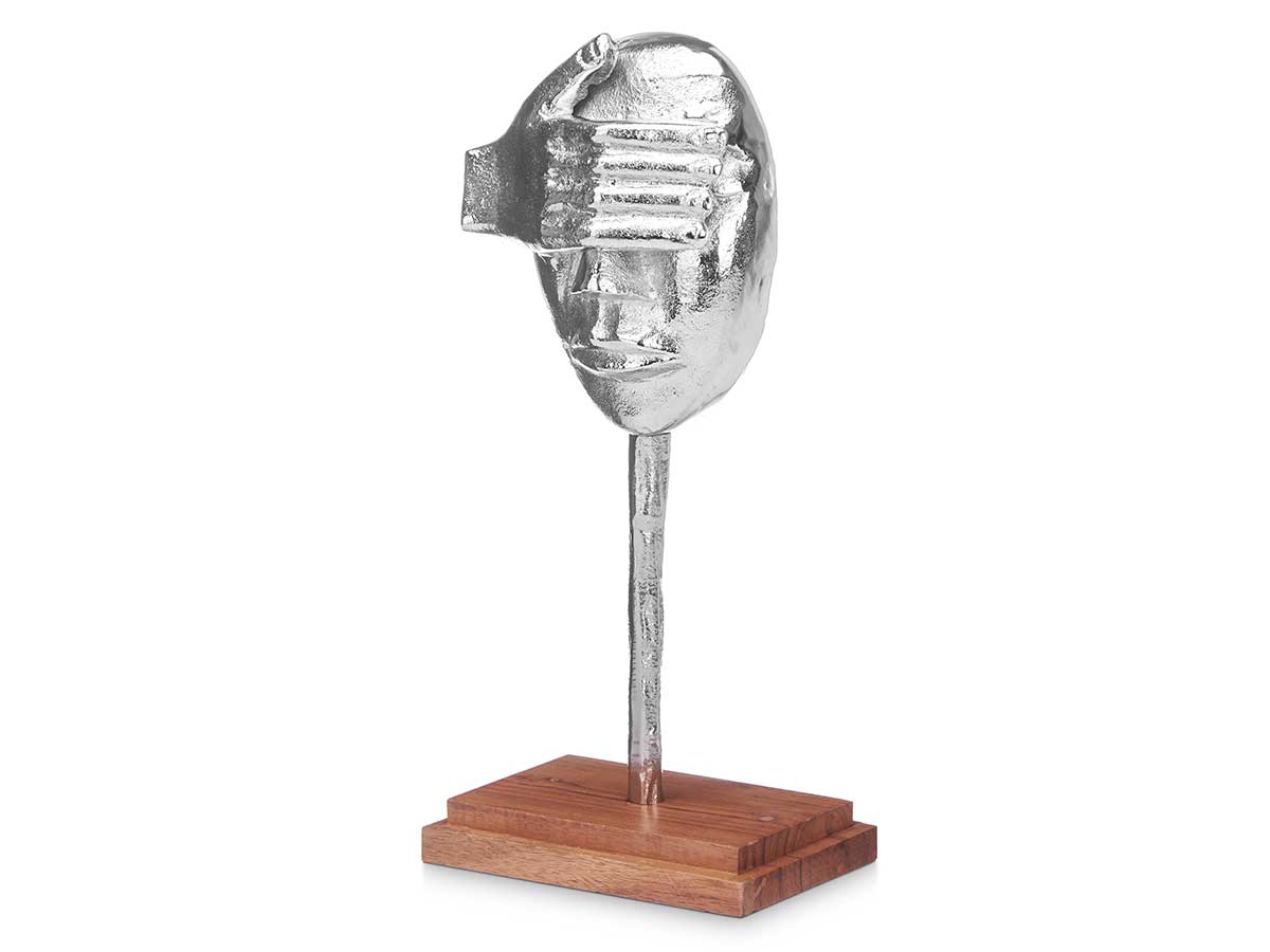 Figura metallo mano occhi arge supporto in legno