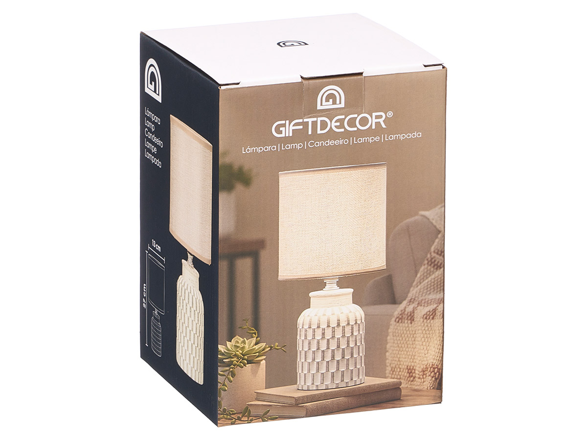 Portada » Negozio » Lampada da tavolo cilindrica a righe grigio