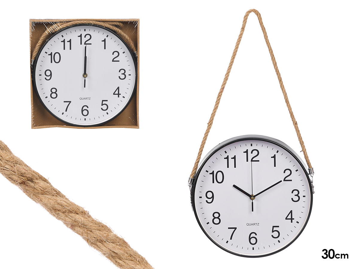 Orologio da parete nero appeso corda 30 cm