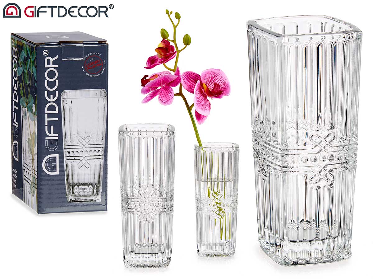 Portafiori vetro quadrato trasparente lazo 15cm