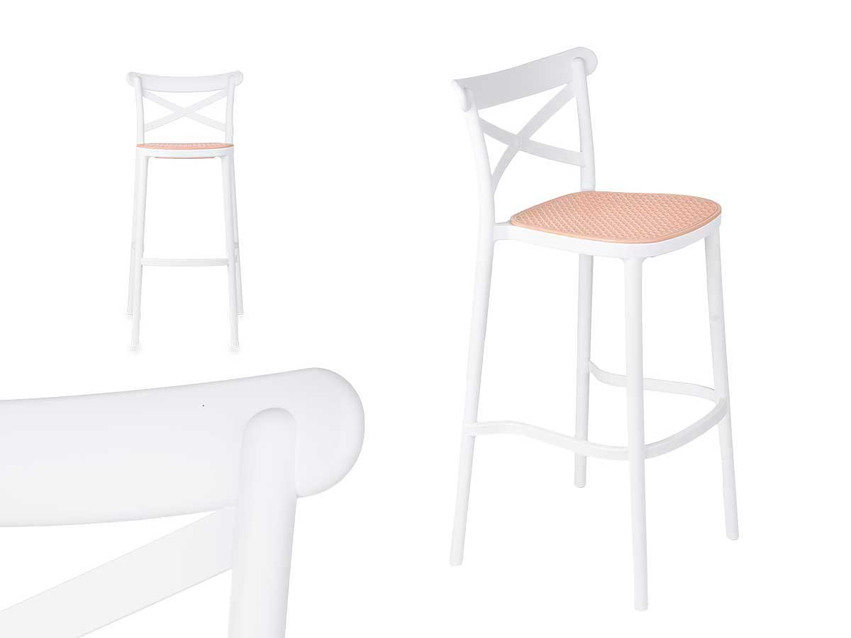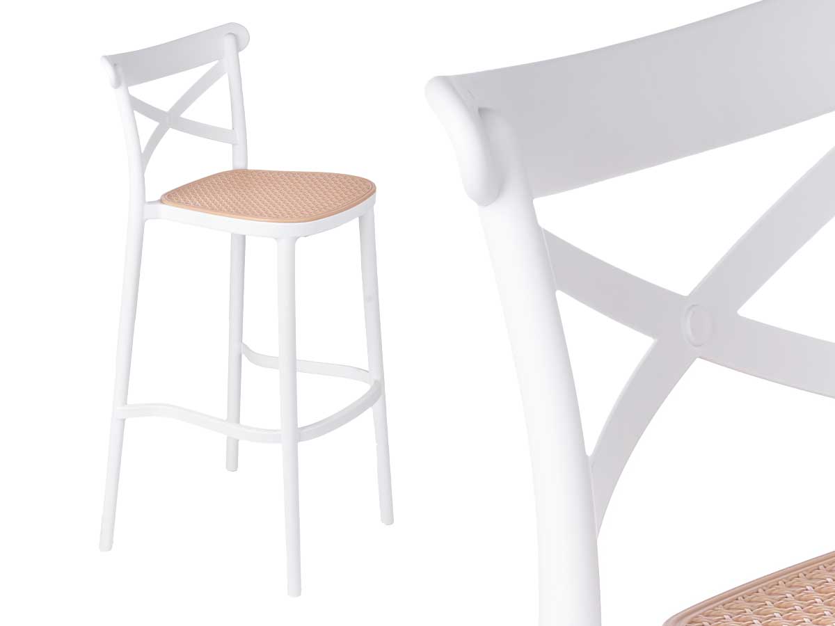 Sgabello rattan plastica bianco beige