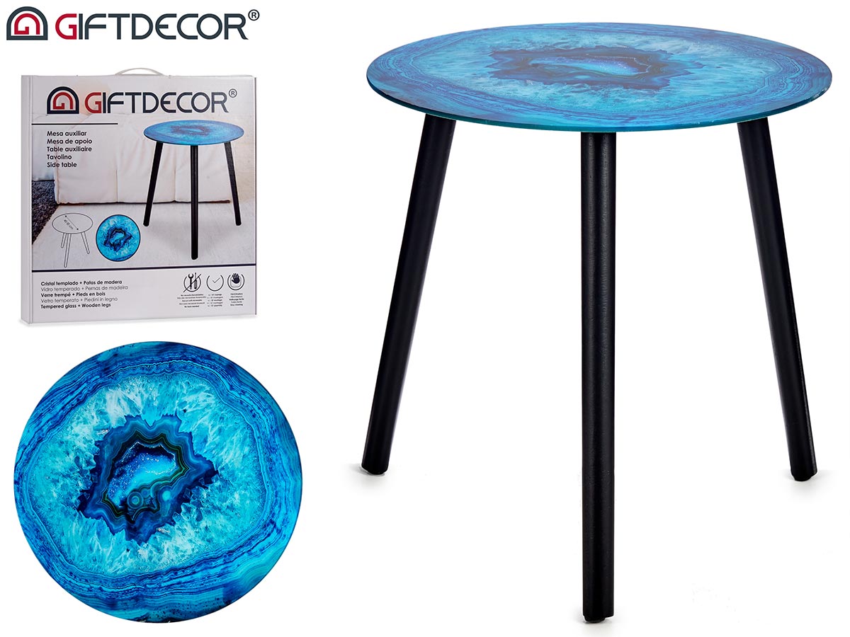 Tavolo cristallo effetto marmo turchese gambe nere