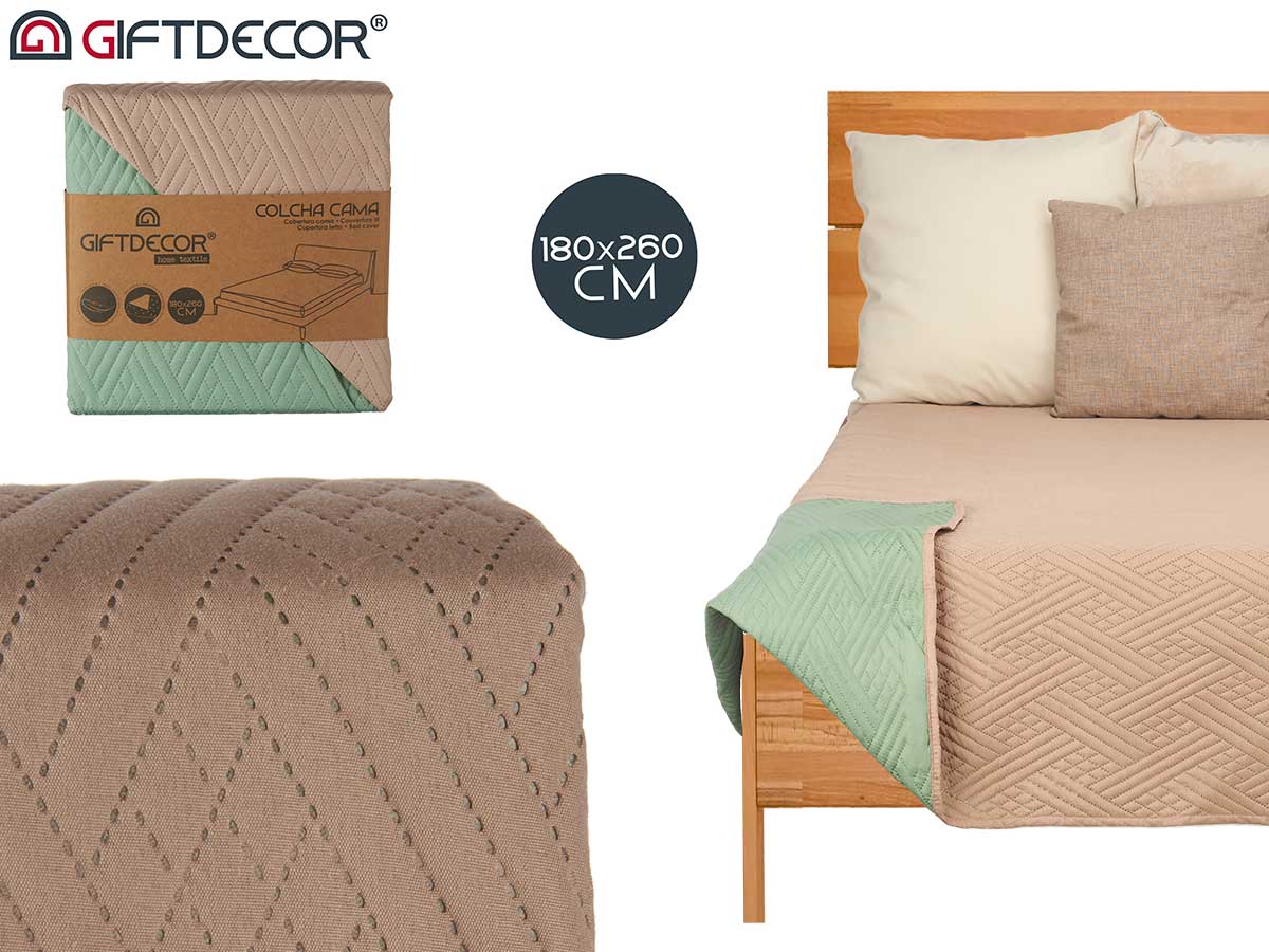 Trapunta letto 180×260 naturale verde mare reversi