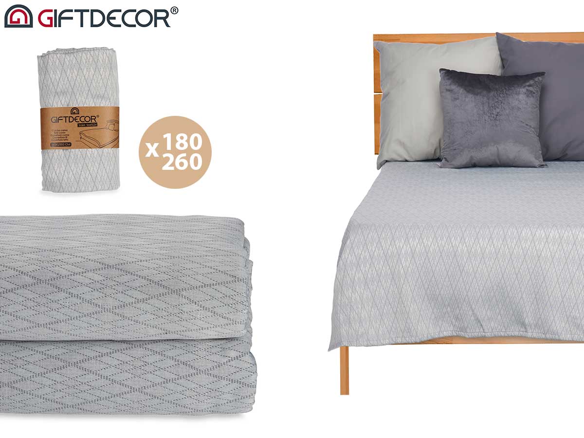Trapunta letto grigio rombi 180x260cm