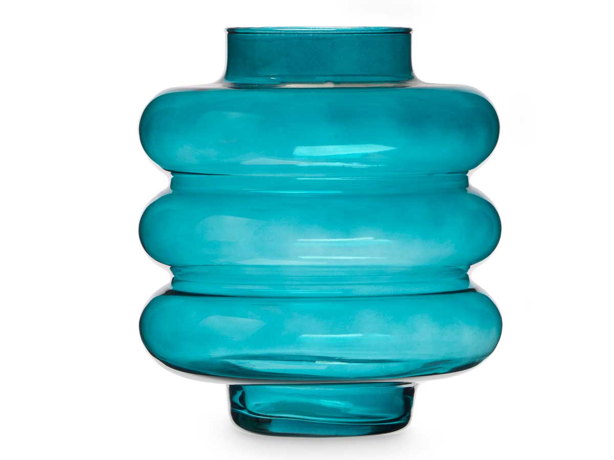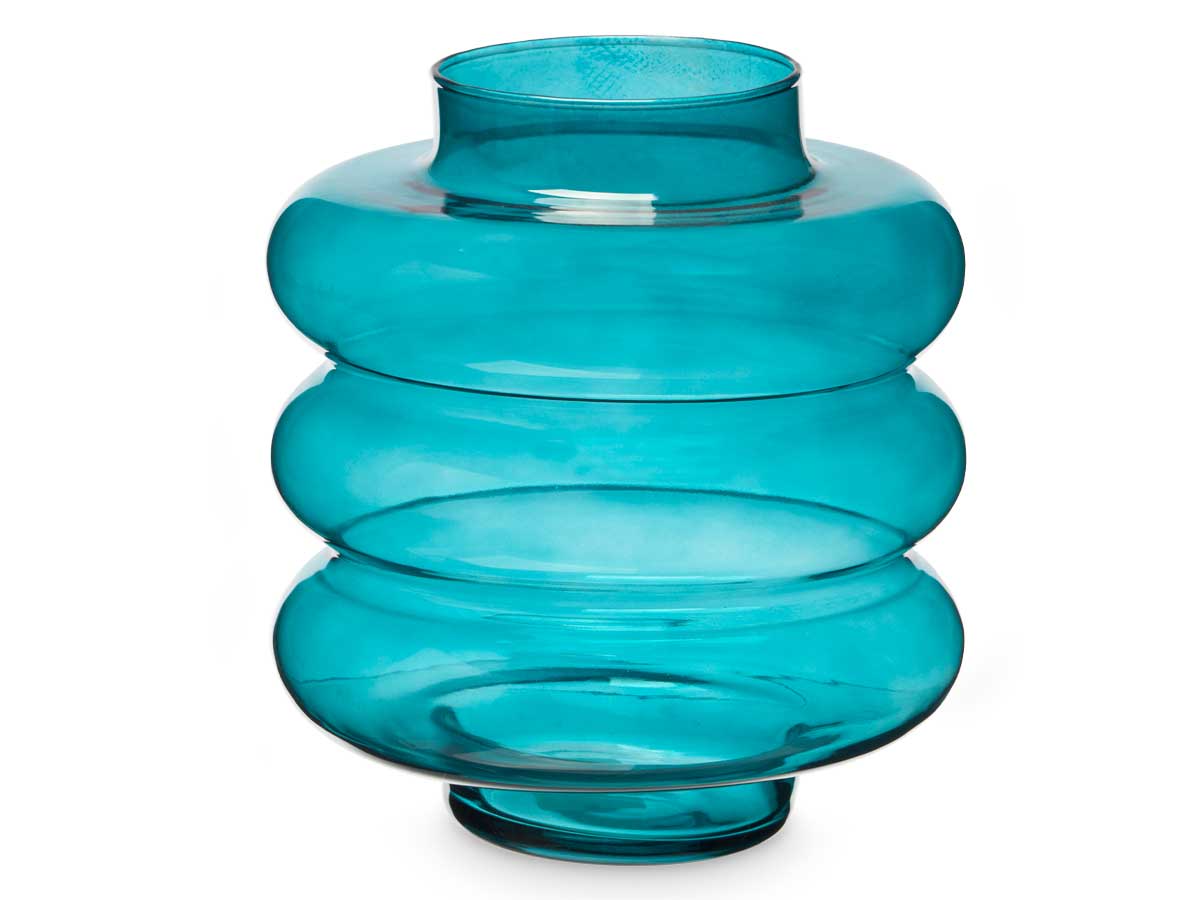 Vaso vetro tripla sfera appiattita 30cm turchese
