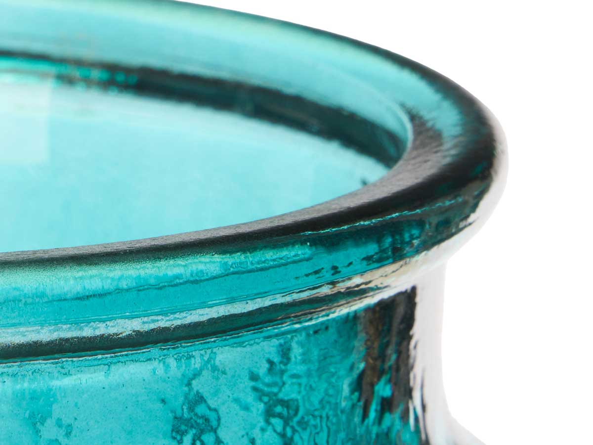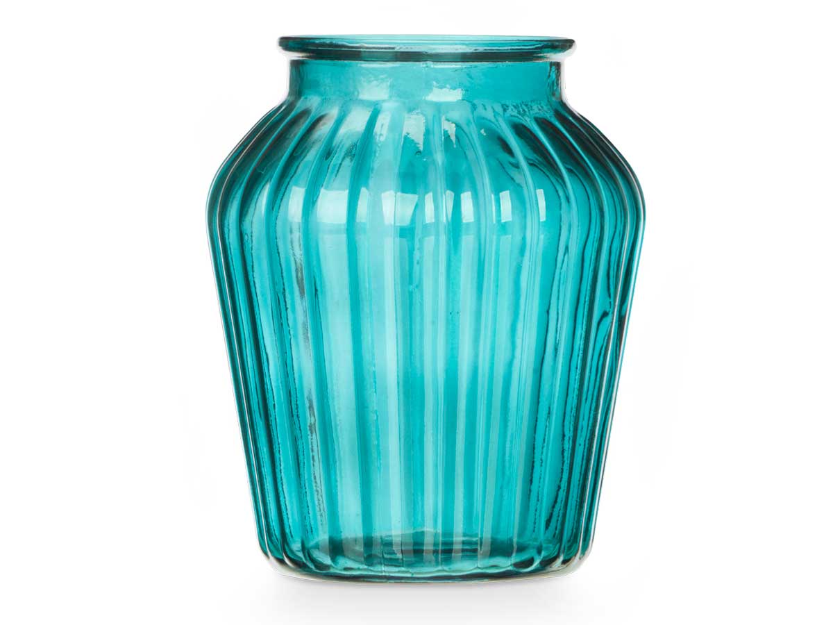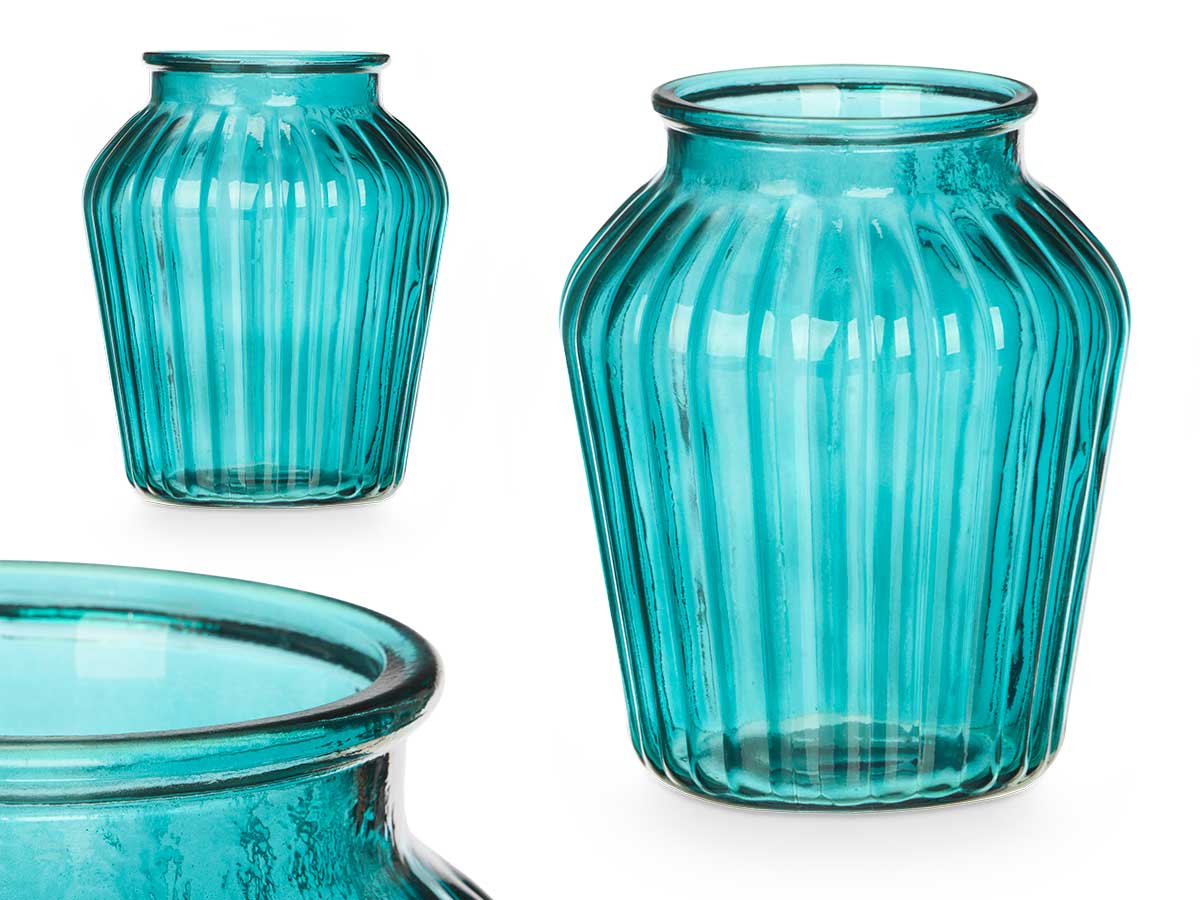 Jarron cristal boca ancha rayado turquesa