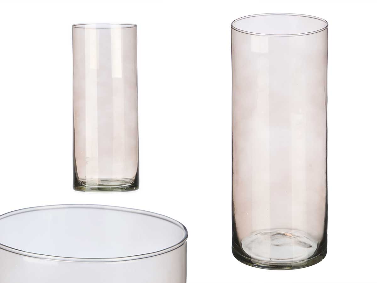 Jarron cristal cilindro 12cm diam x 30cm gris