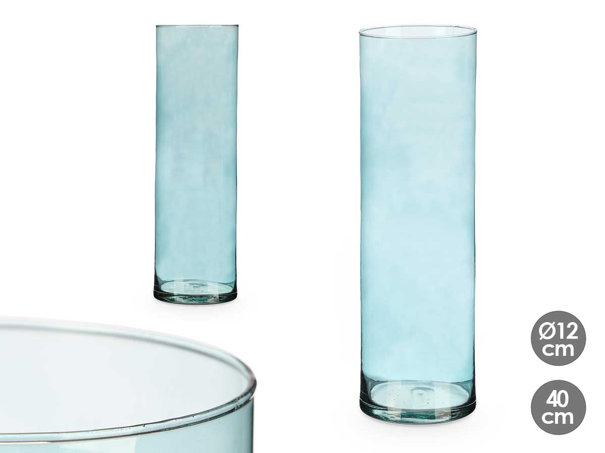 Portada » Tienda » Jarron cristal cilindro 12cm diam x 40cm turquesa