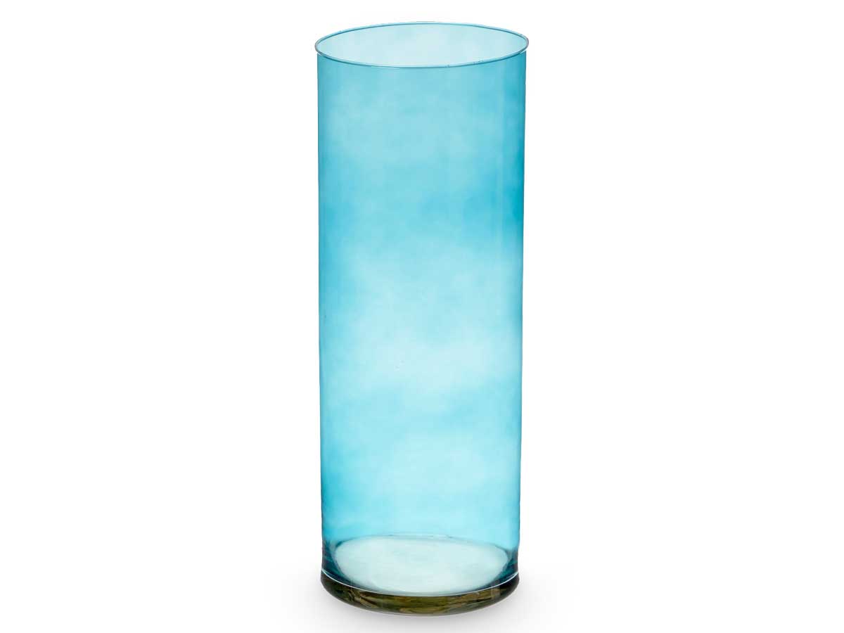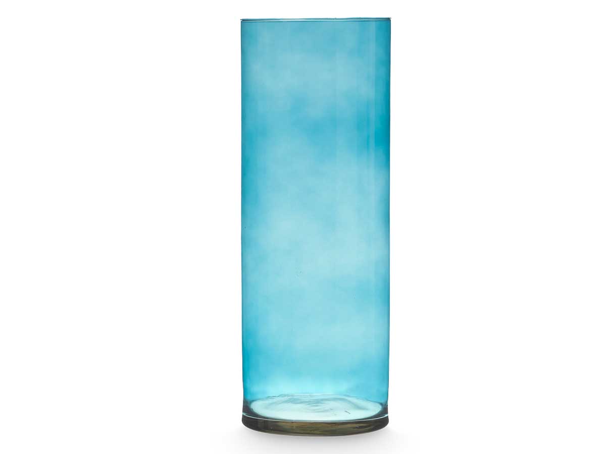 Jarron cristal cilindro 15cm diam x 40cm turquesa