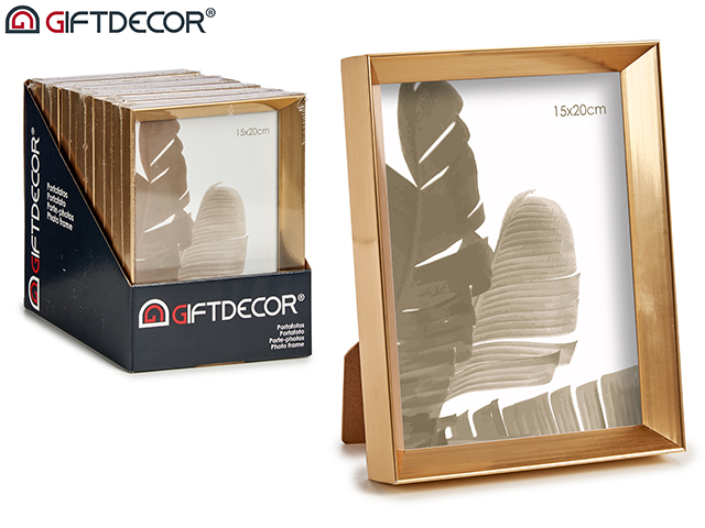 Portafoto plastico moldura oro 15x20cm