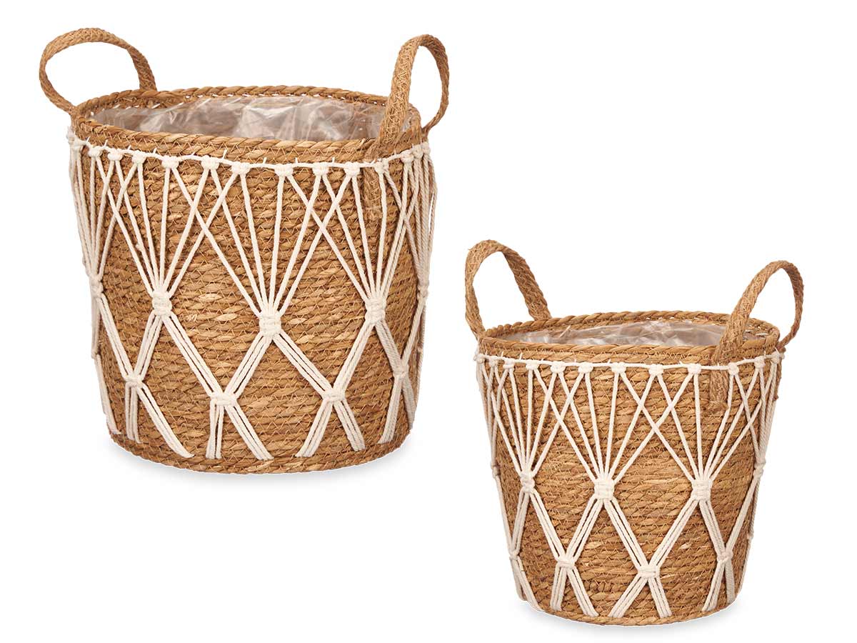 Set 2 macetas esparto 26cm 30cm asas macrame