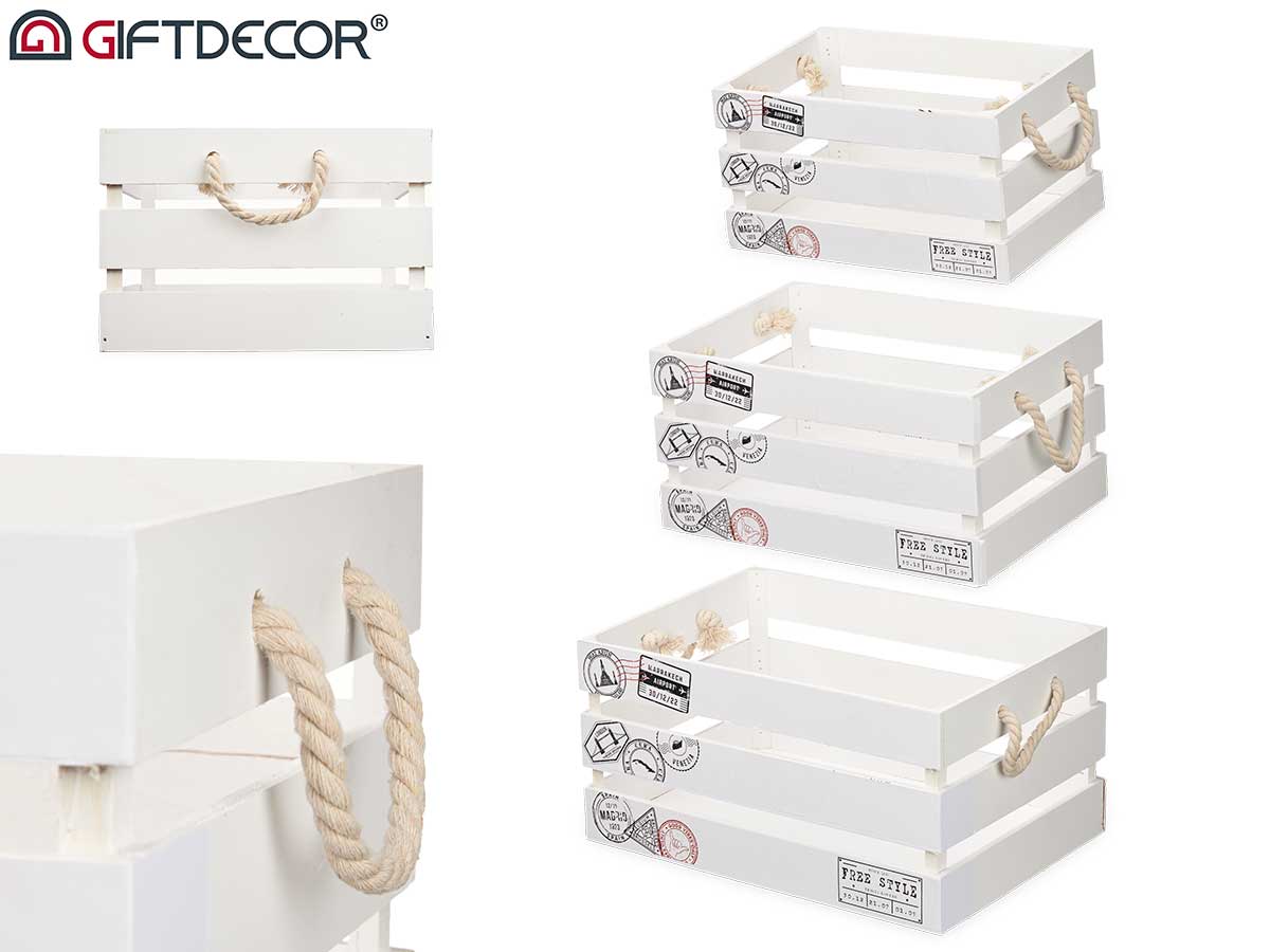 Set 3 cajas madera blancas travel
